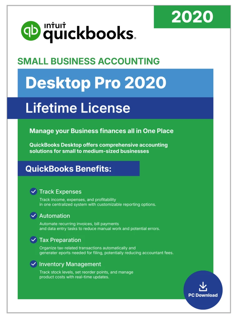QuickBooks Desktop Pro 2020 | Lifetime License | No Subscription | 1-User